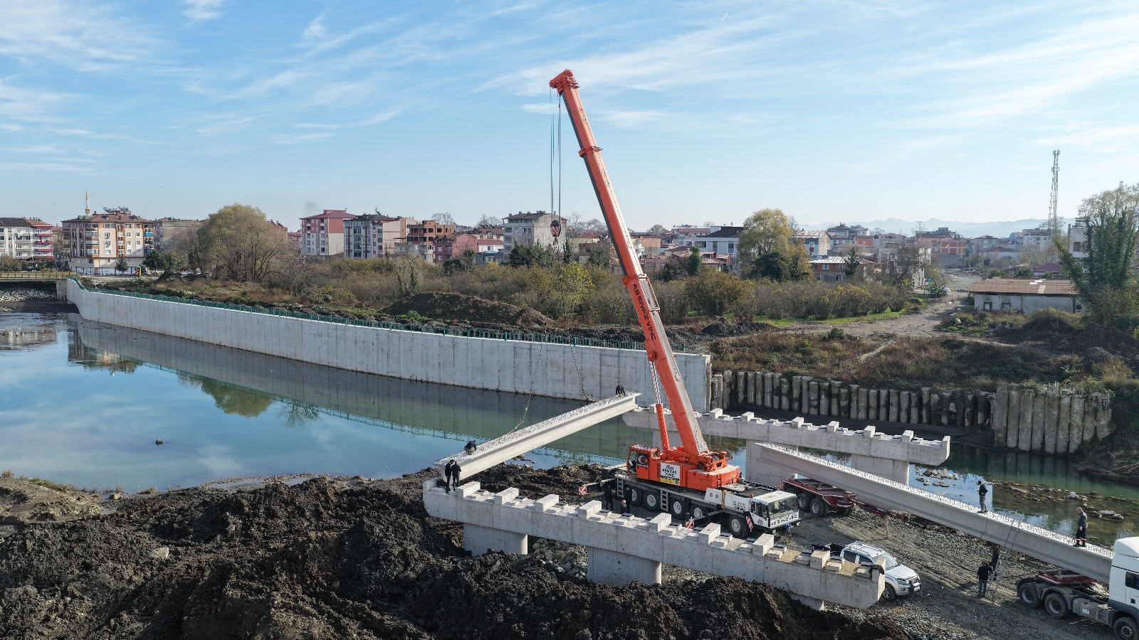 Terme Belediye Başkanı Şenol Kul, Fenk ve Yenimahalle'yi birleştirecek olan hayati önemdeki bulvar yolu ve köprü çalışmalarını inceledi.