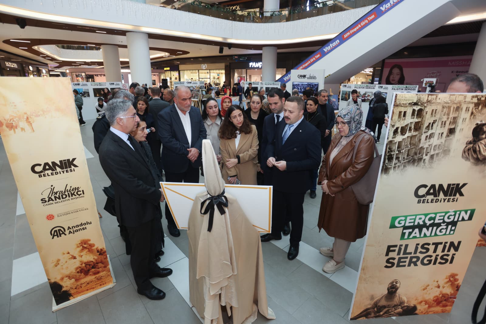 Canik Belediyesi'nin gerçekleştirdiği Gerçeğin Tanığı Filistin Sergisi yoğun ilgi gördü,, İsrail'in zulmüne lanet yağdı.