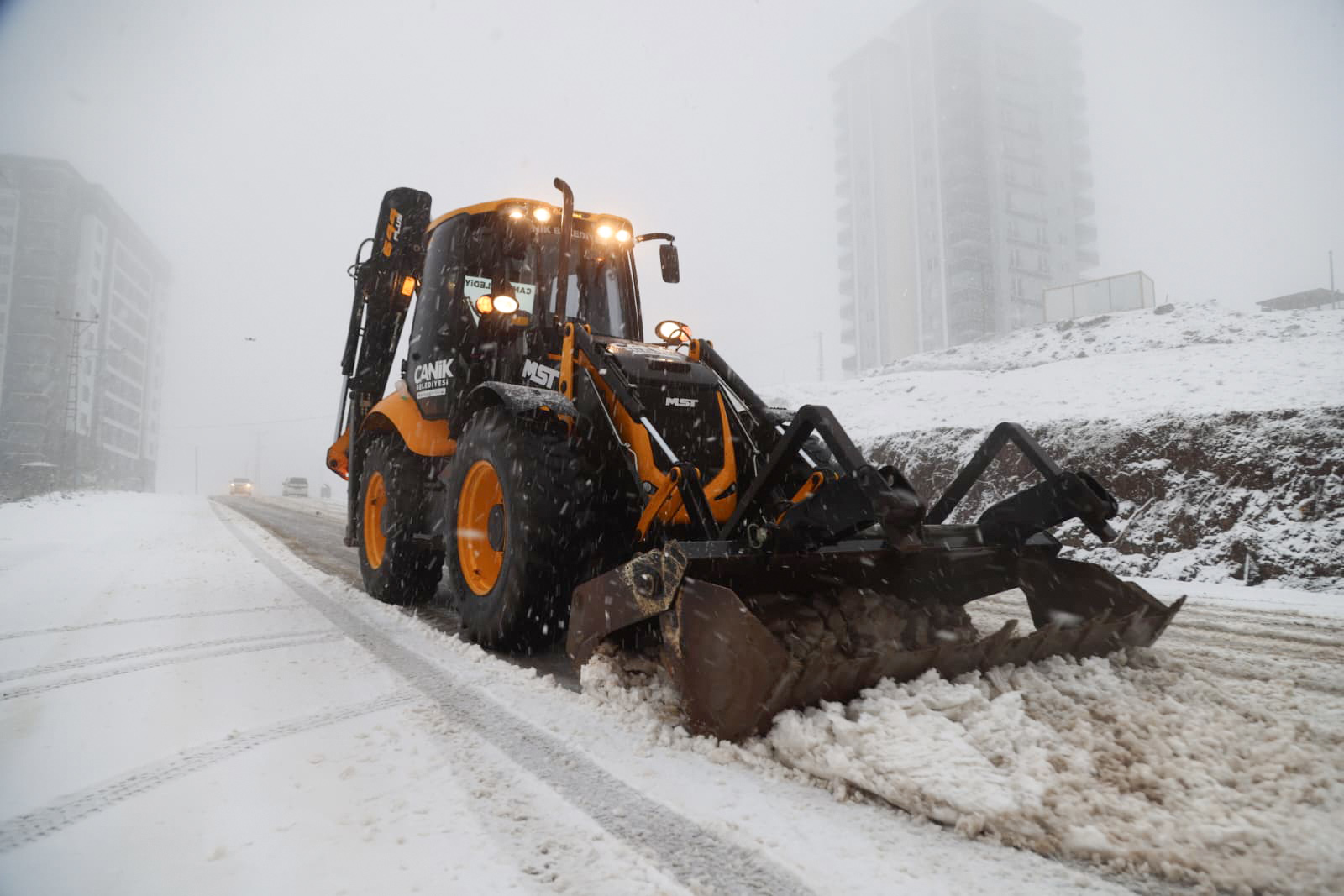 Canik Belediyesi, ilçenin yüksek kesimlerinde etkili olan kar yağışlarına karşı sahada çalışmalarına yoğun bir şekilde devam ediyor.