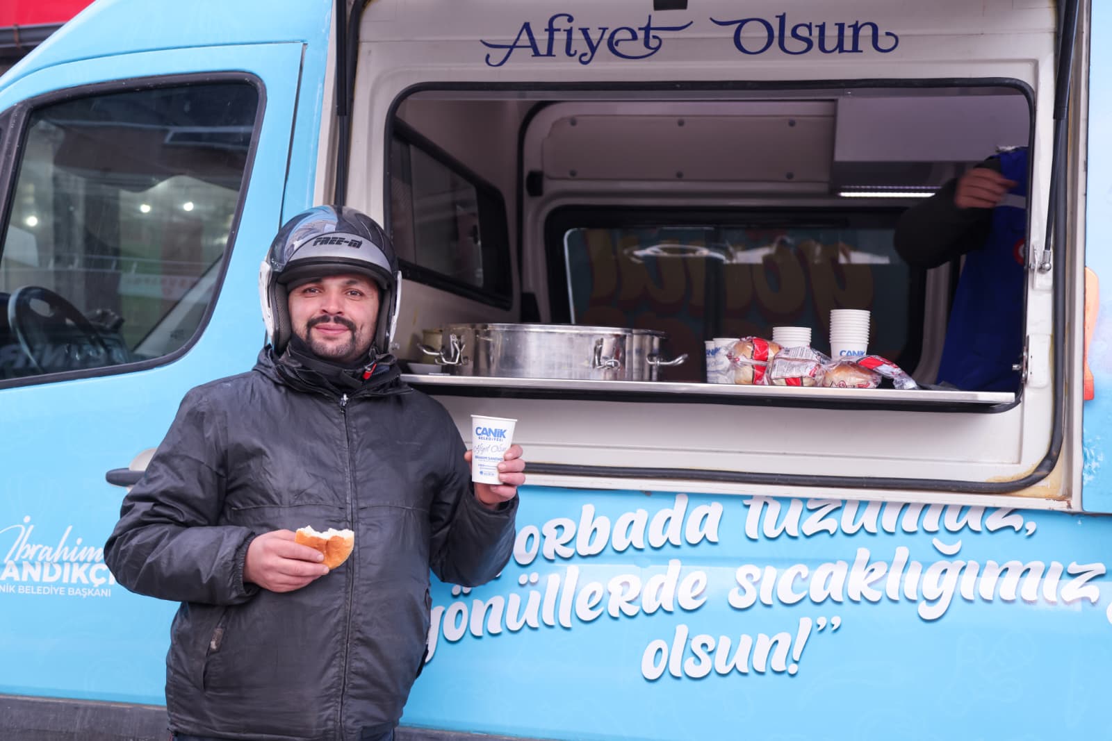 Canik Belediyesi, Gönül Sofrası İkram Aracı'yla ilçenin farkı noktalarında öğrencilere ve vatandaşlara ikramlarda bulunmayı sürdürüyor. Okul bölgelerinde öğrenciler, durak alanlarında vatandaşlar, semt pazarlarında esnaflar başta olmak üzere ilçe sakinlerine özenle hazırlanan çeşitli ikramlarda bulunan Canik Belediyesi, sabahın ilk saatlerinde gerçekleştirdiği çorba ikramlarıyla hem içleri hem de gönülleri ısıtıyor.