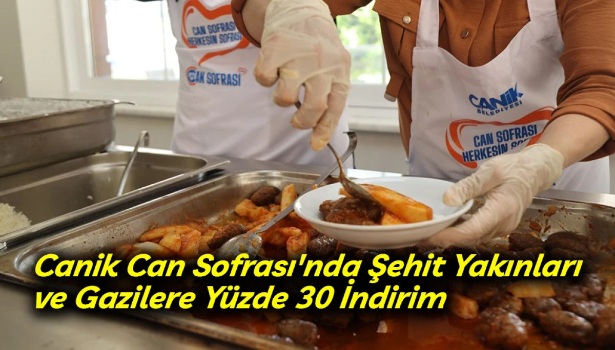Canik Belediyesi, vatandaşları kaliteli ürünlerle hazırladığı sağlıklı ve lezzetli yemeklerle buluşturduğu Can Sofrası'nda şehit yakınları, gaziler ve gazi ailelerine yönelik indirim uygulamasını hayata geçirdi.