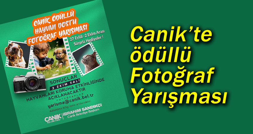 Canik Belediyesi Ödüllü Hayvan Dostu Fotoğraf Yarışması’nda ödül almaya hak kazanan katılımcılar, 3 Ekim 2023 tarihinde ilçede gerçekleştirilecek olan Canik Belediyesi Dünya Hayvanları Koruma Günü Etkinliği’nde açıklanacak.
