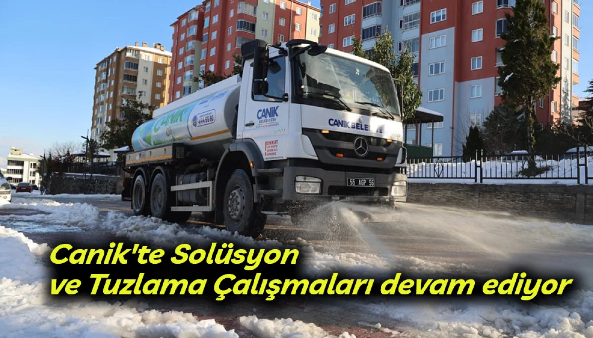 Canik Belediyesi, trafik güvenliği, buzlanma ve don olaylarına karşı solüsyon uygulama, tuzlama ve kar küreme çalışmalarını yoğun bir şekilde sürdürüyor.