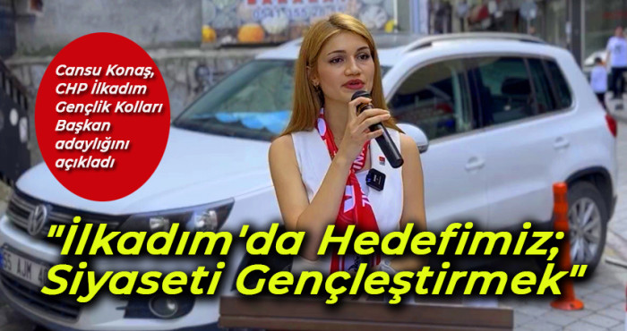 CHP'de gençlik kolları kongre süreci başladı. Cansu Konaş Cansu Konaş adaylığını CHP İlkadım İlçe Başkanlığı'nda düzenlediği basın toplantısı ile açıkladı.