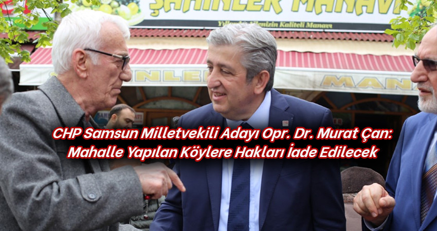 CHP Samsun Milletvekili Adayı Opr. Dr. Murat Çan, Büyükşehir Yasası nedeniyle mahalle yapılan köylerin haklarını iade edeceklerini açıkladı.