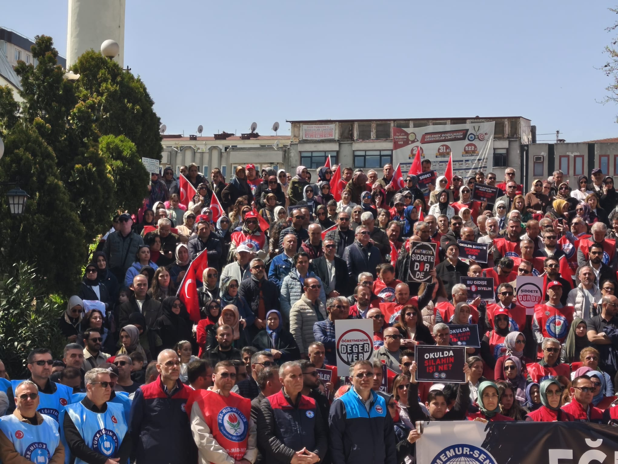 23 Nisan Ortaokulu önünden yürüyüşe geçen Eğitim Bir Sen Üyeleri, Site Camii önünde toplandı.