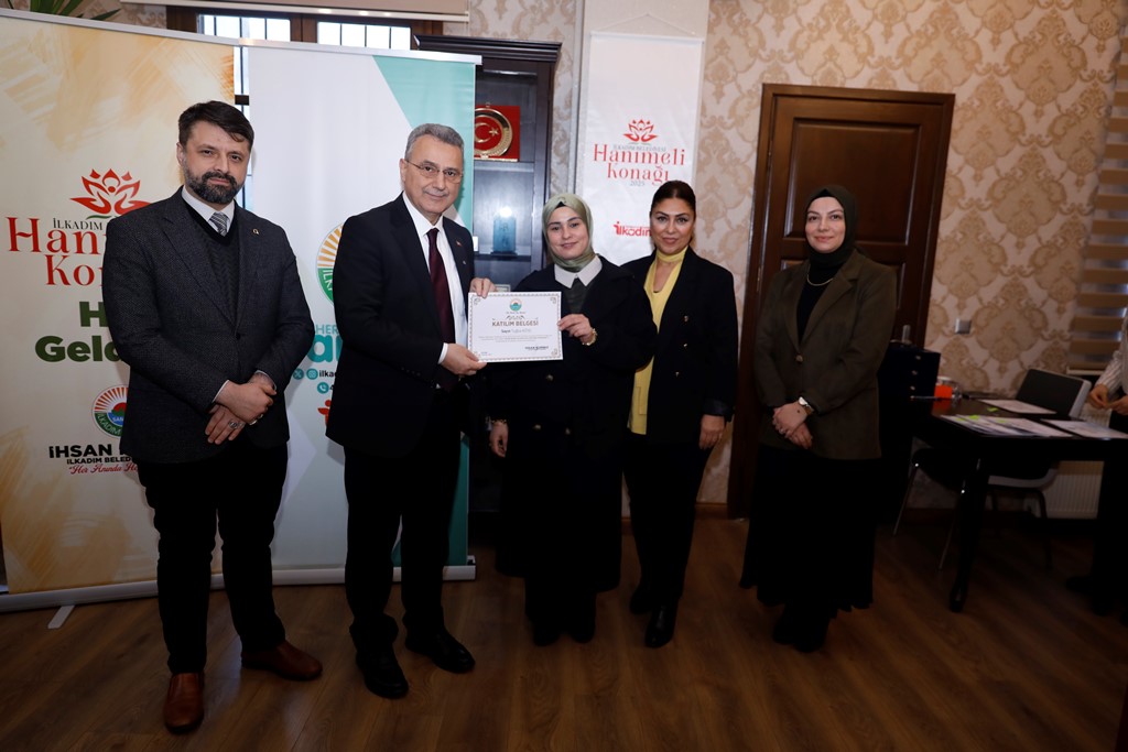 İlkadım Belediyesi tarafından düzenlenen eğitim programlarını başarıyla tamamlayan kursiyerler sertifikalarını İlkaıdm Belediye Başkanı İhsan Kurnaz’dan aldı.