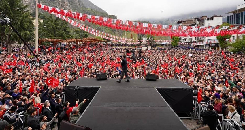 Gençlere güvendiğini vurgulayan İmamoğlu, “Gençlere hatırlatayım: Dayınız yok, halanız yok, tanıdığınız yok, o malum partiye de üye olma durumunuz yok ise, işe girebiliyor musunuz? İşte biz ne diyeceğiz biliyor musunuz? Bu memlekette çaba gösteren, emek gösteren, çalışan herkese, ‘Hakkımı alacağım duygusunu’ her gence vereceğiz. İşte o zaman, hiçbir gencimiz hayallerini ötelemeyecek, hayallerinden vazgeçmeyecek, memleketinden vazgeçmeyecek” diye konuştu. Ülkenin, yanlış yönetim nedeniyle ekonomik olarak çökertildiğinin altını çizen İmamoğlu, “Bu sorunları yaratan, bu sorunları büyüten, memleketimizin her insanına adaletsizliği ve hukuksuzluğu yaşatan… Bakınız, biz araştırma yapıyoruz. Bu ülkede yüzde 80’e yakın insanımız, adaletin olmadığına, hak, hukuk sisteminin olmadığına dönük yorum yapıyor. Hukuksuzluğu bu ülkenin her noktasına sokan, partizanlığı devletimizin her kurumuna tabiri caizse sokan bu akıl diyor ki: ‘Ben çözeceğim.’ Ya Allah aşkına, sen sorunların hepsini yarattın. Nasıl çözeceksin? İnanmayın bunlara, inanmayın. İnanacağınız tek şey var: Milletin ittifakı” şeklinde konuştu.