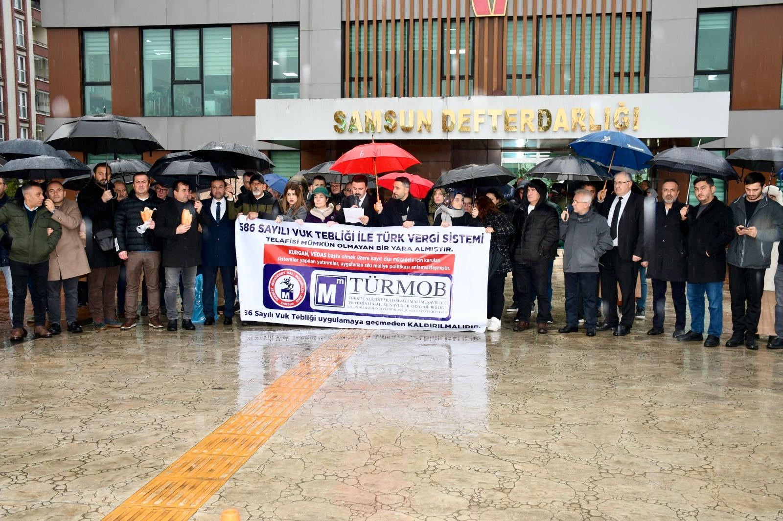 Serbest Muhasebeciler ve Mali Müşavirler Odası Samsun Şube Başkanı Osman Arslan ve üyeleri, Samsun Defterdarlığı önünde basın açıklaması yaptı.