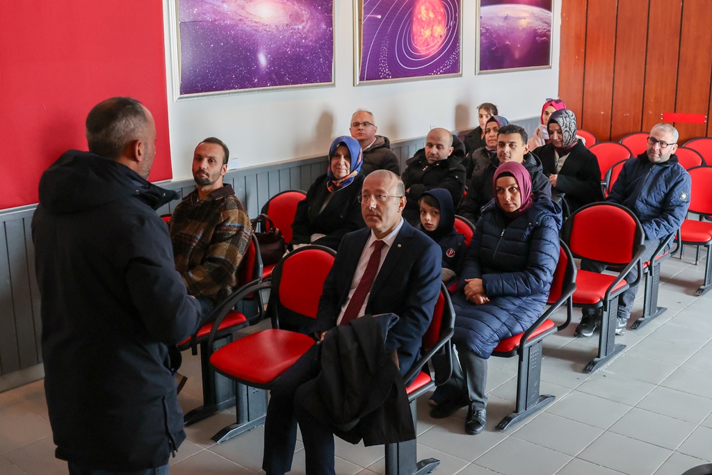 Uzay terimlerinin anlatıldığı ve Planetaryum sorumlusu Dr. Selami Kalkan tarafından gerçekleştirilen sunumda; gezegenler, ışık hızı, Güneş sistemi, yıldızlar ve karadelikler konu başlıkları hakkında bilgilendirme konuşması ve sinevizyon gösterisi gerçekleştirildi.