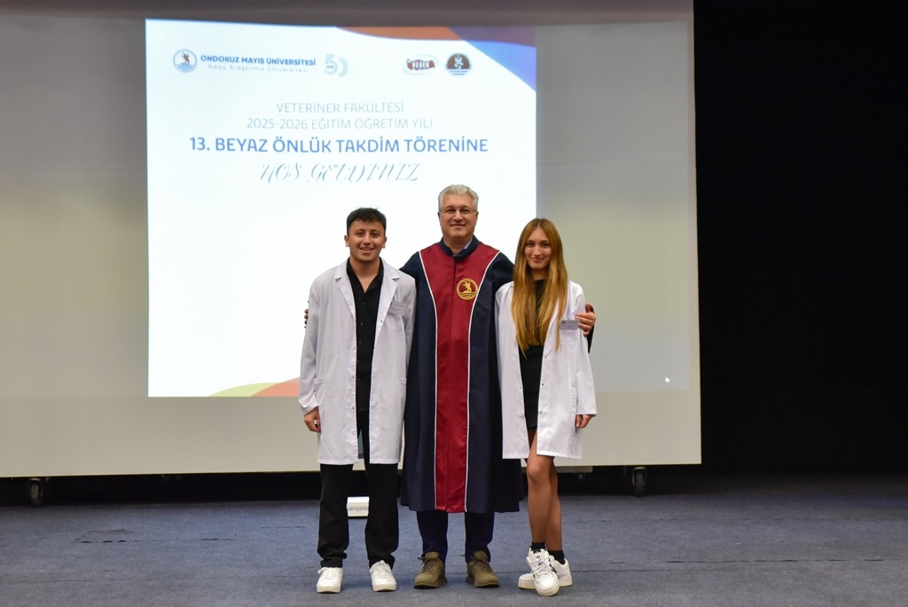 Ondokuz Mayıs Üniversitesi (OMÜ) Veteriner Fakültesi 13. Beyaz Önlük Takdim Töreninde fakülteye bu yıl yerleşen 66 öğrenci, beyaz önlüklerini giyerek mesleğe ilk adımlarını attı.
