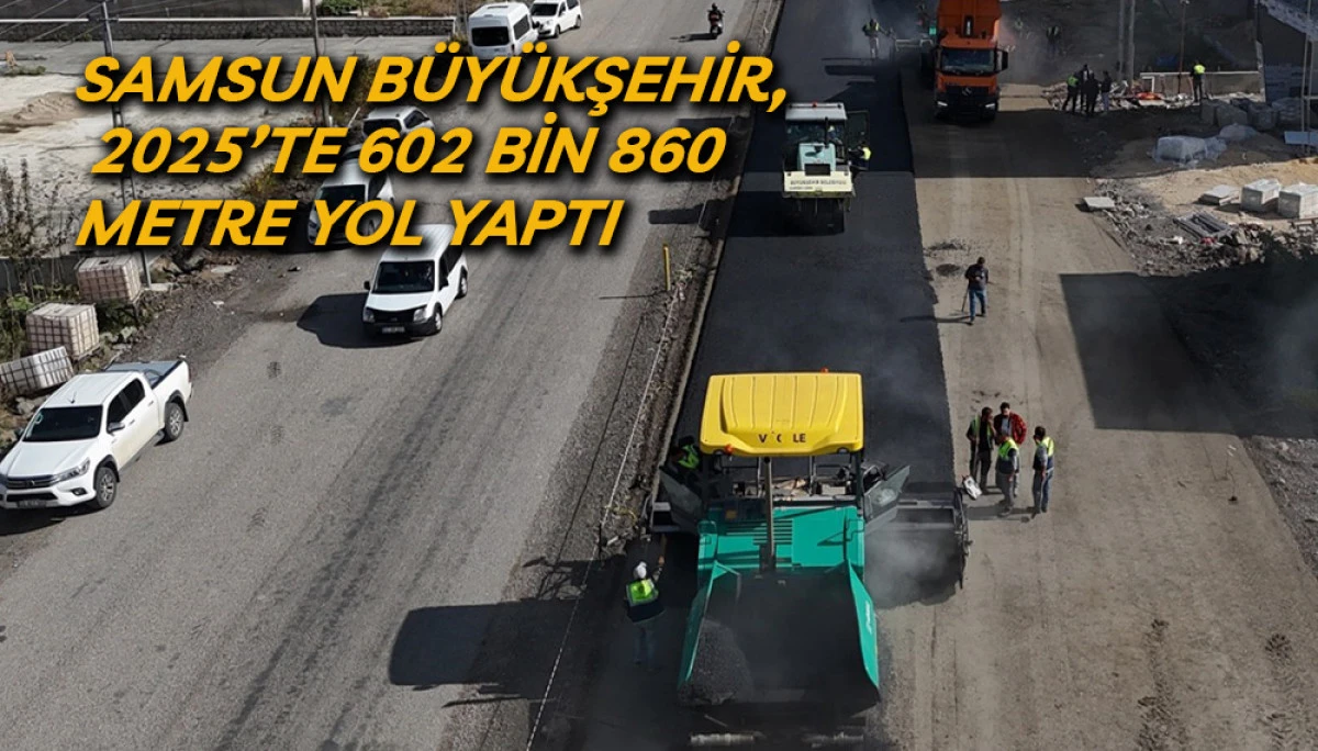 Samsun Büyükşehir Belediyesi, 2025 yılında 17 ilçede 602 bin 860 metre yol çalışması gerçekleştirdi.
