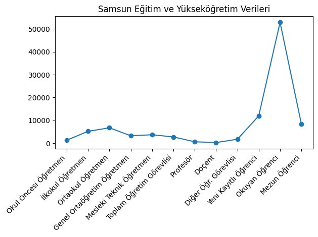 Samsun Ticaret ve Sanayi Odası Eğitim Komitesi Başkanı Sedat Uygun Samsun’un eğitim verilerini de açıkladı. Buna göre Samsun’un eğitim verileri şöyle: