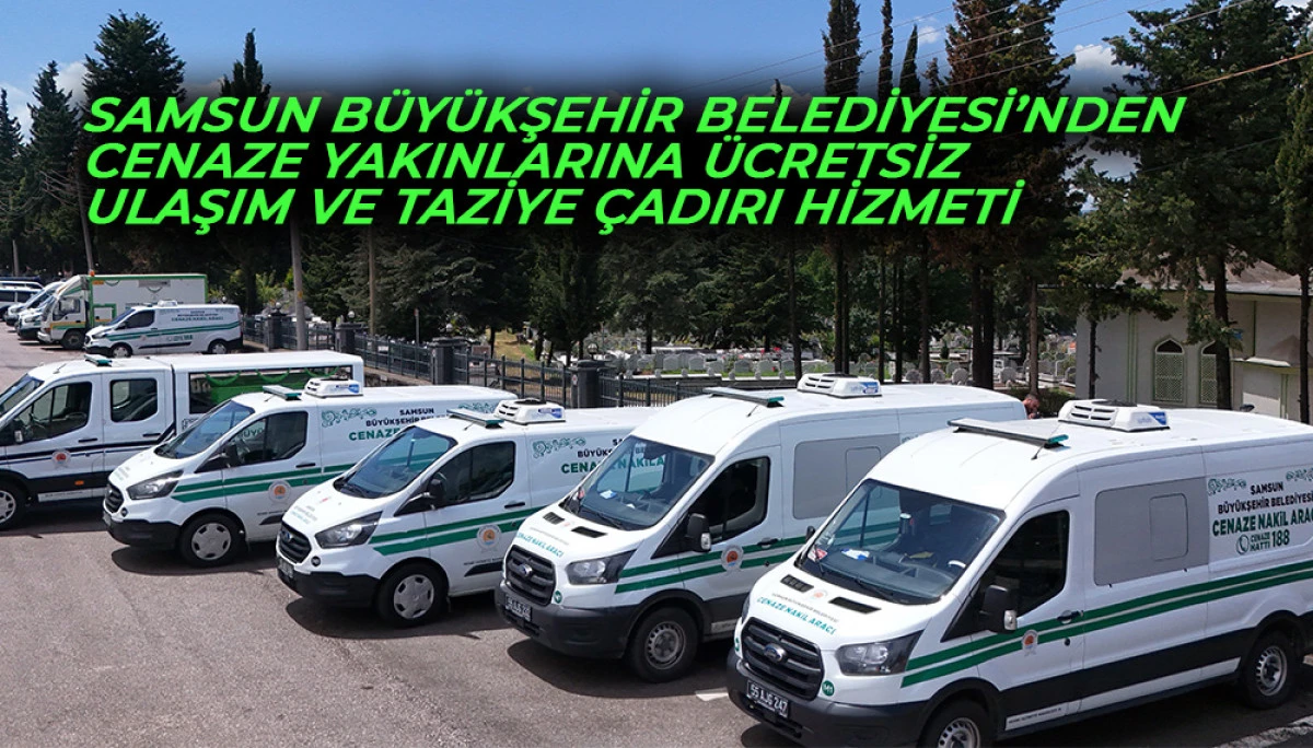 Samsun Büyükşehir Belediyesi cenaze hizmetleri noktasında yeni bir adım daha atarak cenaze yakınları için mezarlıklara ulaşım ve taziye çadırı desteği vermeye başladı.