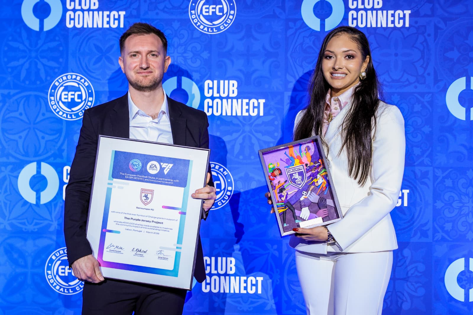Avrupa Kulüpler Birliği (EFC) ve EA SPORTS FC™, futbolun toplumsal değişim gücünü kullanarak fark yaratan projeleri ödüllendirdikleri “Değişimin Sembolü” (Symbol of Change) hibelerinin 2026 yılı kazananlarını açıkladı. Türkiye’den Samsunspor, kadına yönelik şiddetle mücadeleyi hedefleyen “Mor Forma” (Purple Jersey) projesiyle Avrupa’nın en prestijli toplumsal sorumluluk ödüllerinden birine layık görülerek 100 bin Euro hibe almaya hak kazandı.