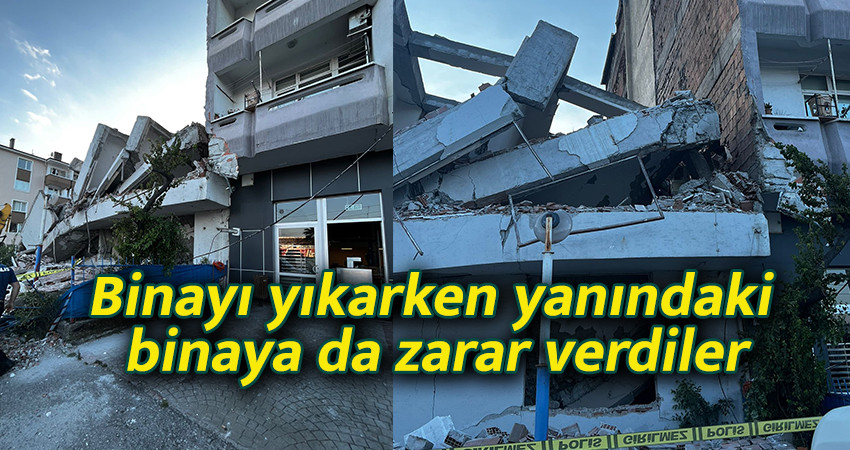 Samsun'da eski Sosyal Güvenlik Binasının yıkım işini alan firma yıkım çalışmaları sırasında yandaki binanın da çökmesine yol açtı.