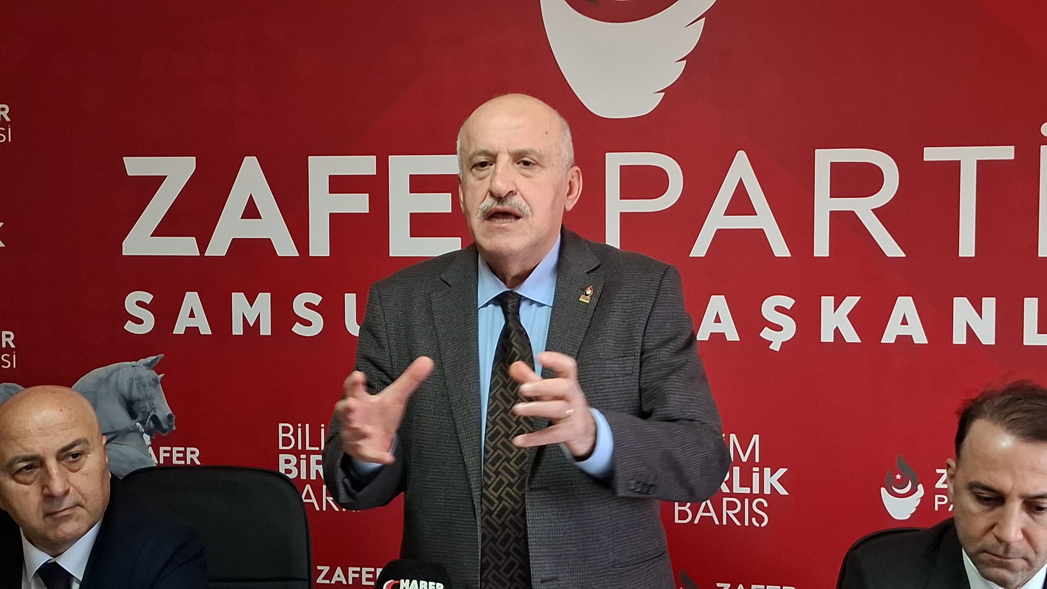 Zafer Partisi Basın ve İletişim Başkanı Nazif Okumuş ve İş Dünyası ile İlişkiler Başkanı Zekeriya Mete, Zafer Partisi Samsun İl Başkanlığı’nda basın toplantısı düzenledi.